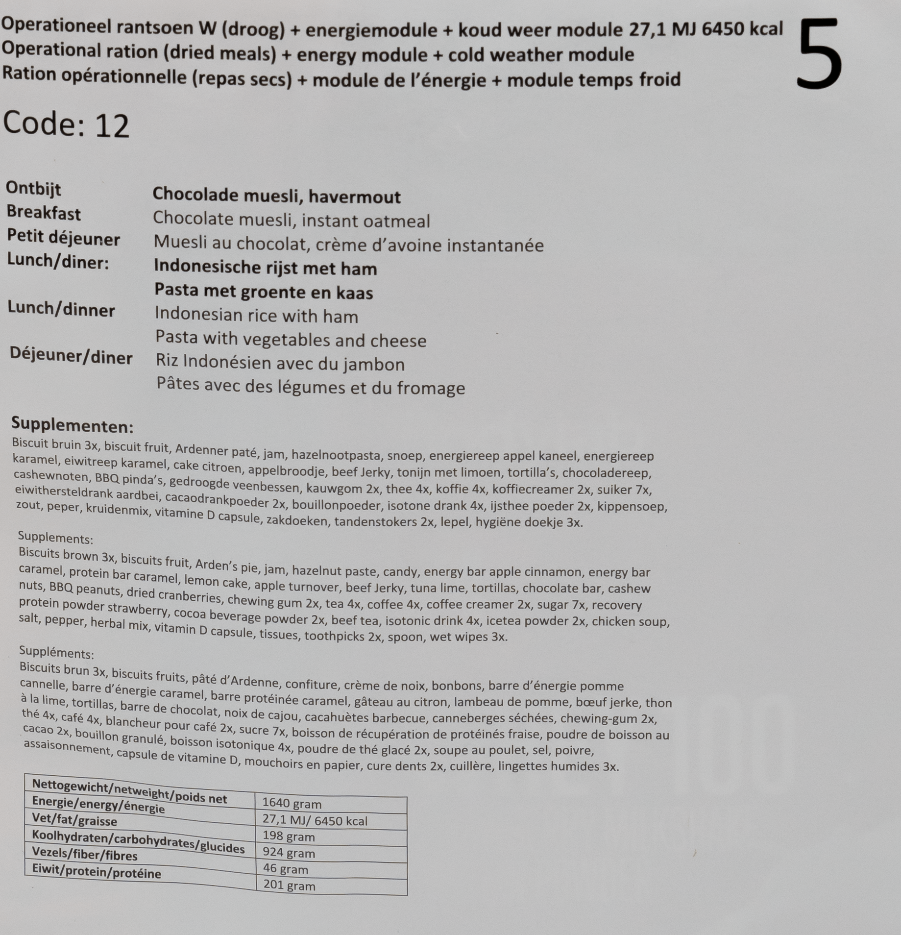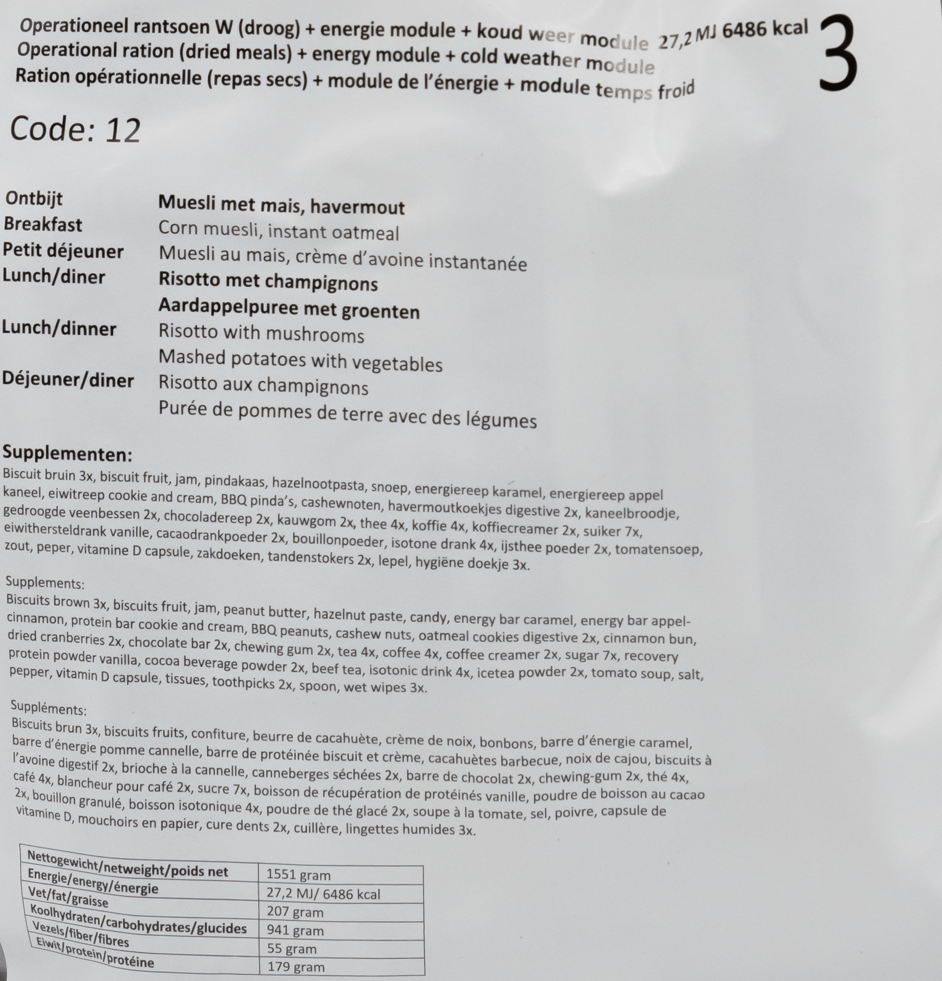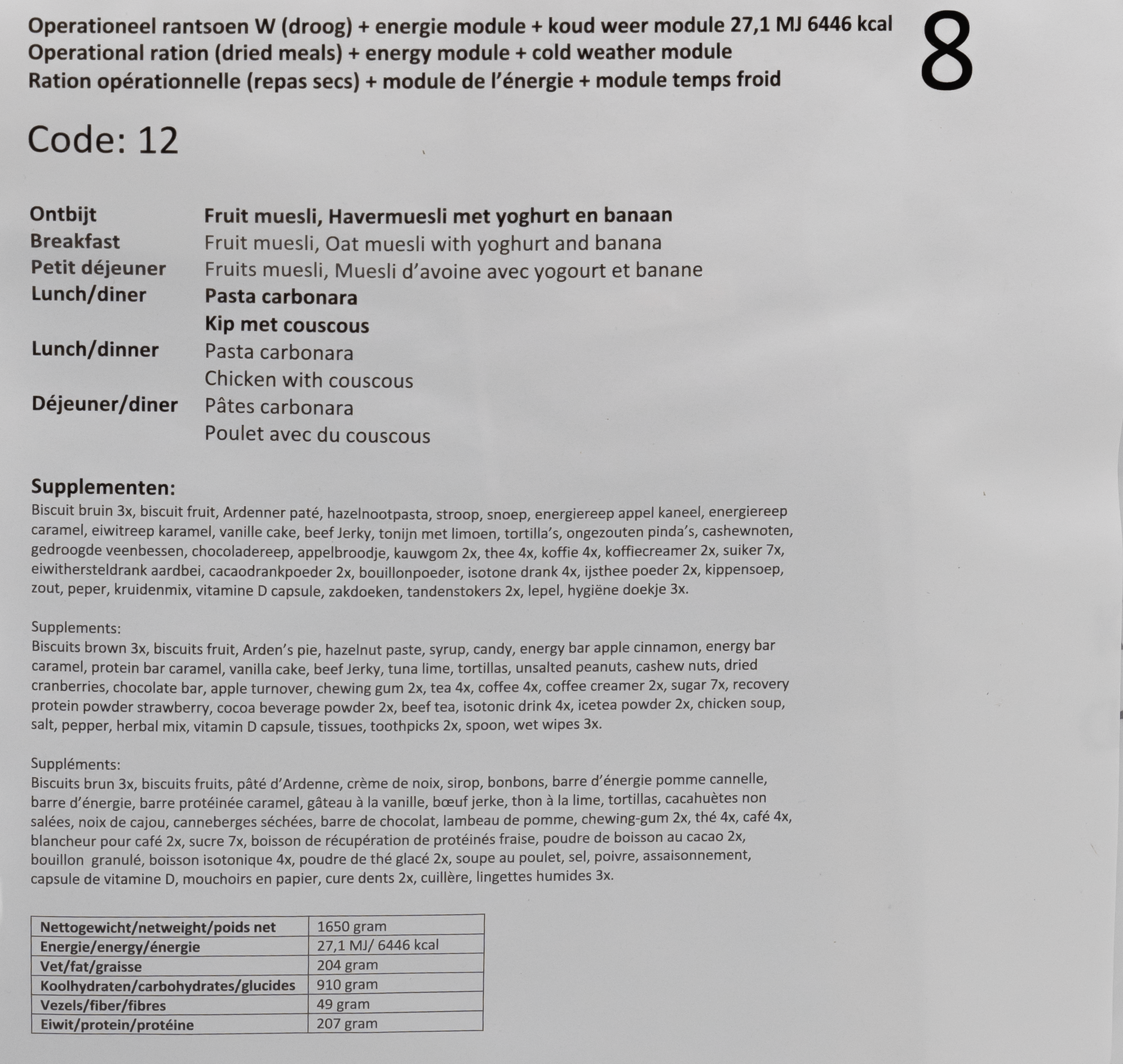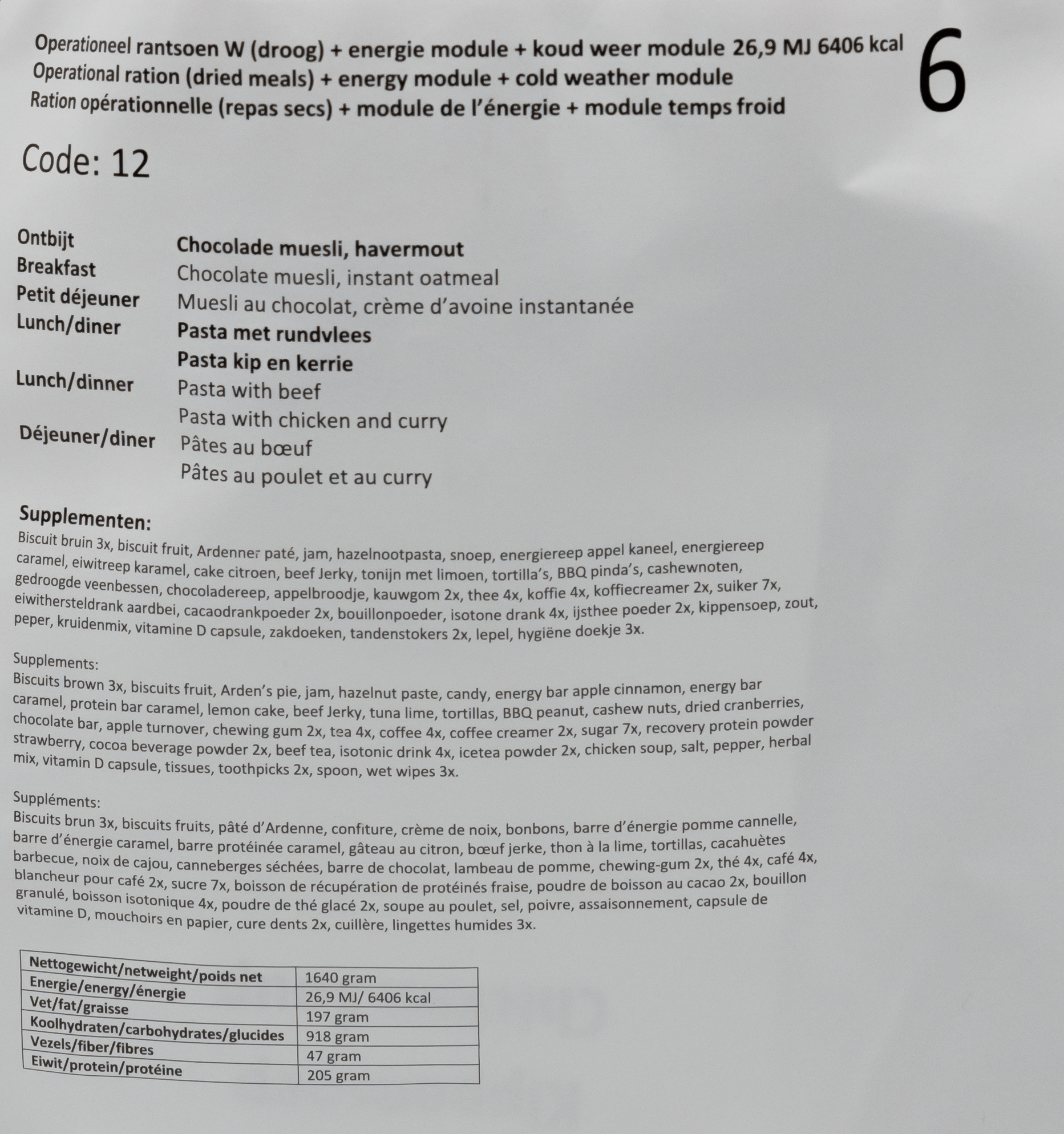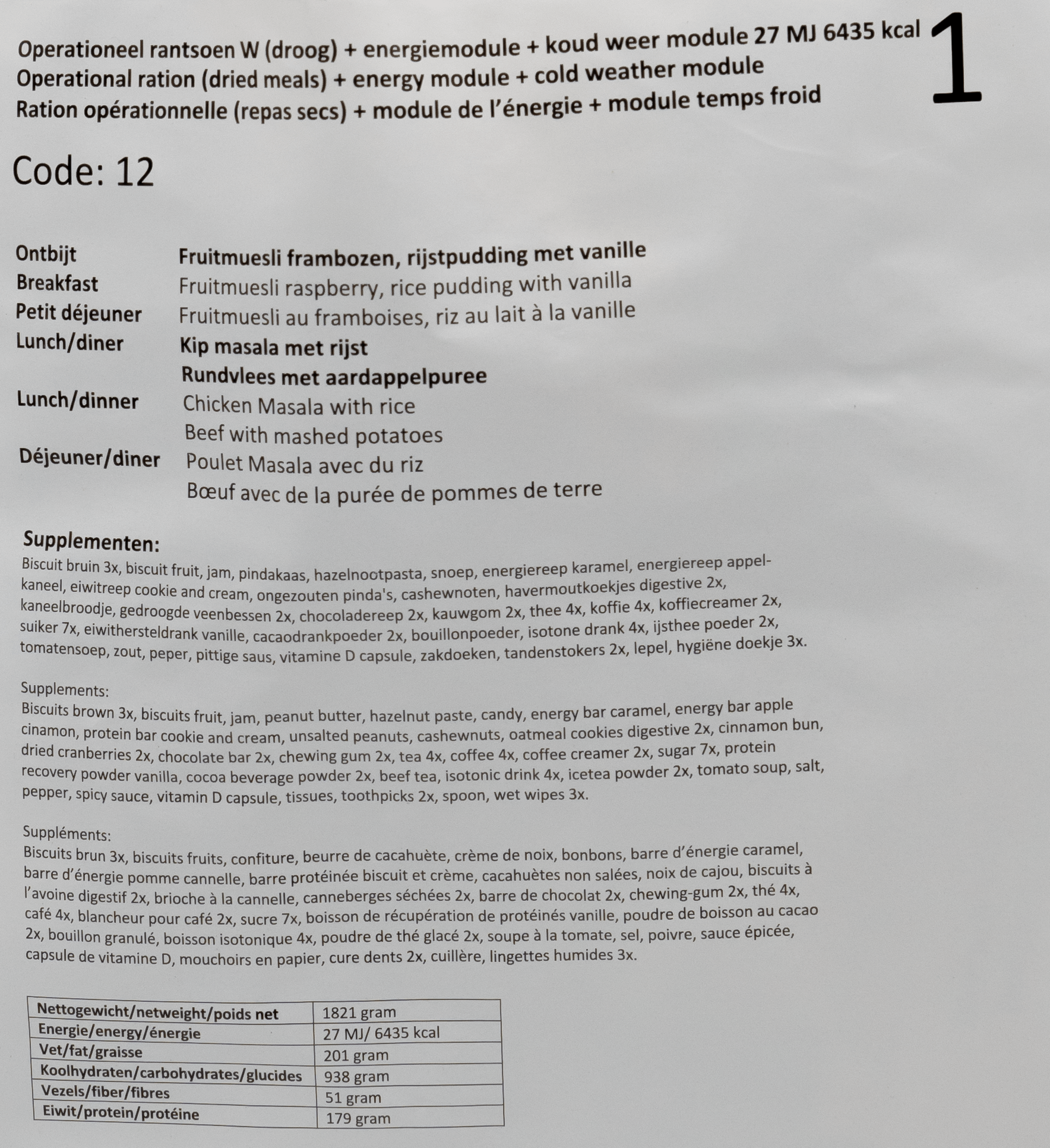 Dutch Armed Forces Operational Ration 2023 Edition Arctic Ration
